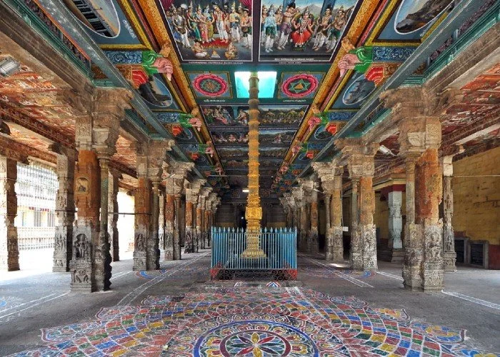 In the innermost sanctum, behind the curtain, there is no anthropomorphic idol, only empty space adorned with golden bilva leaves. This Chidambara Rahasyam is not symbolic negation but ontological assertion: space itself is conscious. The dance does not occur within space; the dance may be read as that which renders space perceptible.