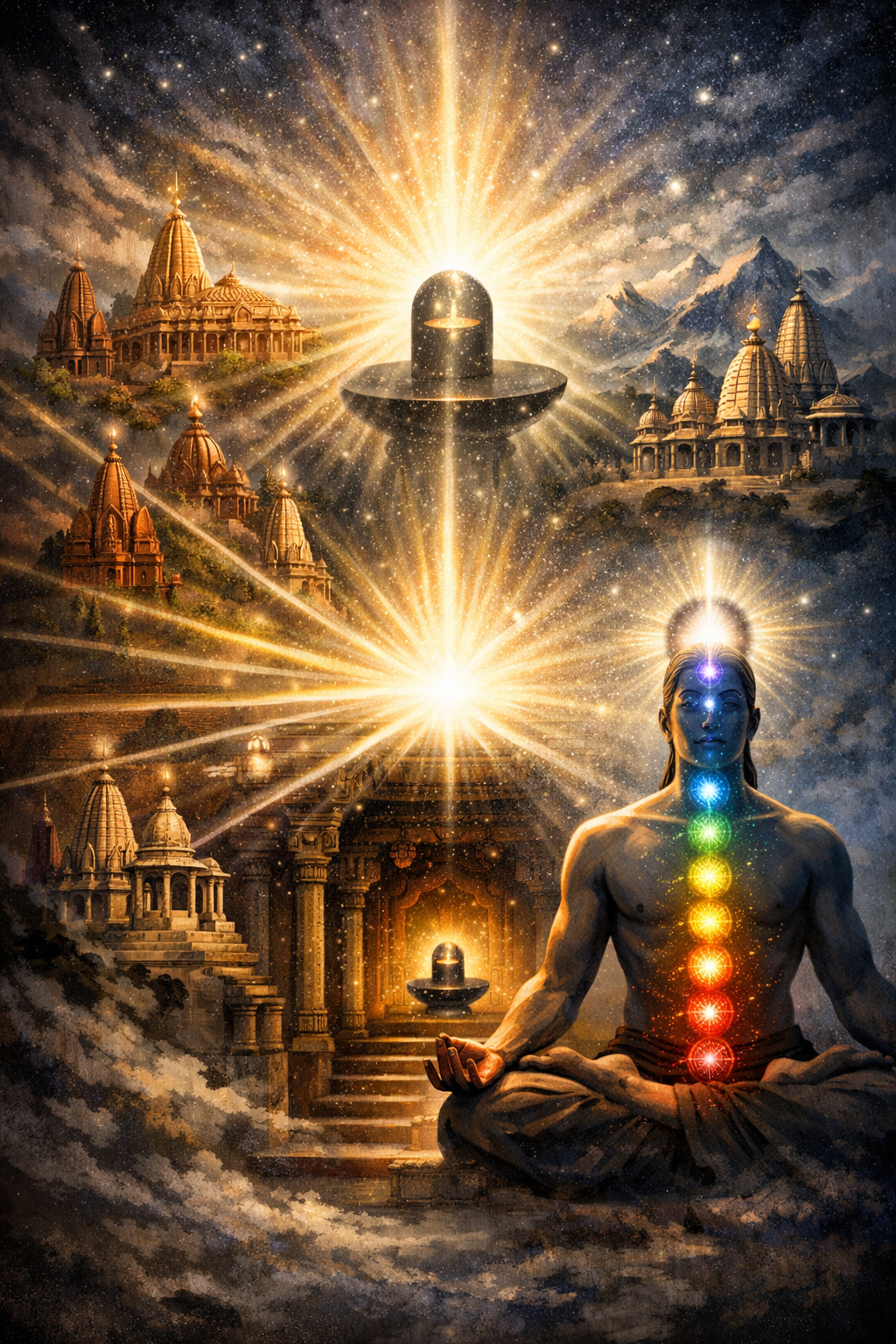The sixty-four Jyotirlinga manifestations, as preserved in certain Shaiva traditions, are said to be spread across the entire breadth of the sacred land... north, south, east, west, and everywhere between. In precisely the same way, the sixty-four energy chambers of the subtle body are distributed throughout the entire human form... not confined to a single axis but woven across the whole field of being.